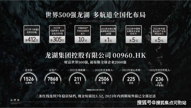龙湖集团,世界500强,房地产综合实力TOP10。稳健的财务及持续的现金流,连续7年三道红线全绿档。