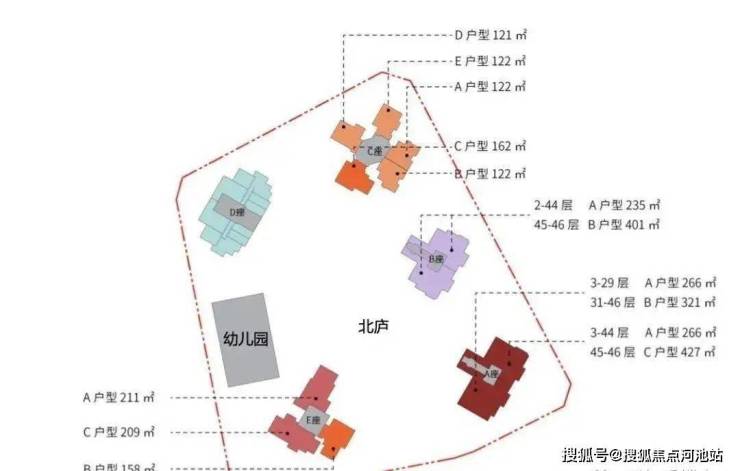 1栋B座:148米,46层,共84户,朝南为主,三梯两户,约235平,401平(顶复)