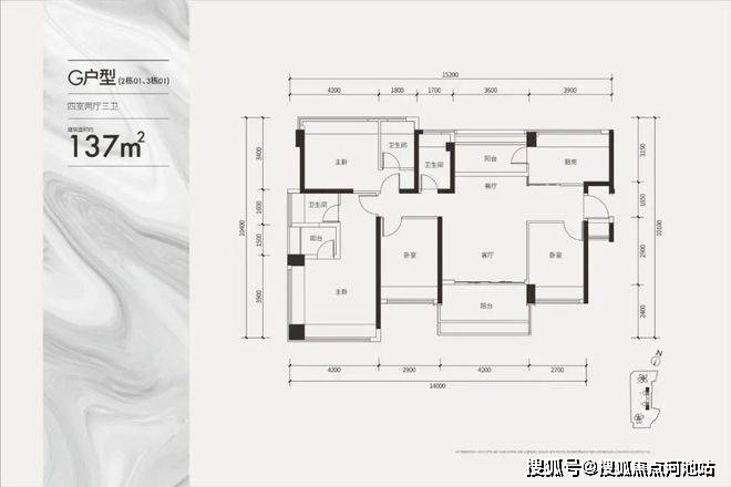 建面137㎡四房三卫