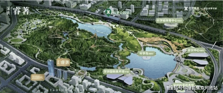 3、深铁睿著广场也是光明科学公园头排位置仅有的4个楼盘之一,且总高都是31层的住宅,在这个板块也只有振业天境云庭是高层住宅,其它都是超高层建筑。