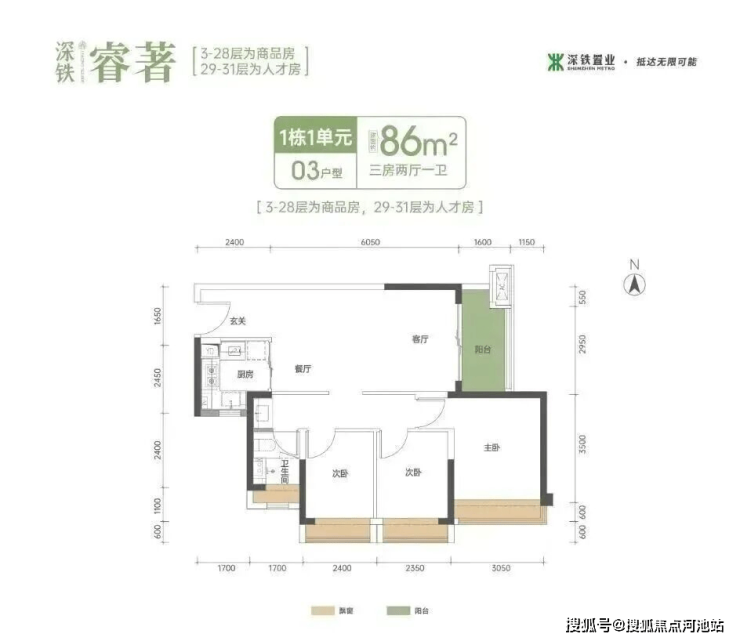 深铁睿著项目精筑建面约86-141㎡阔景三至四房,大部分户型双阳台设计,可瞰科学公园景观,以高品质彰显光明中芯区阔景臻质舒享家。