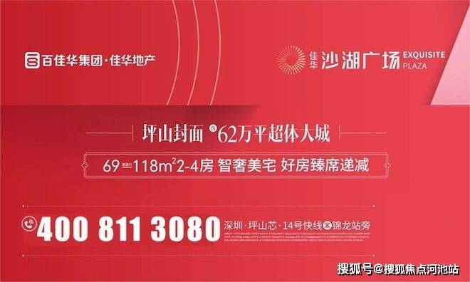 深圳坪山销冠楼盘【佳华沙湖广场】加推6栋2单元楼王! 单价2.6万起!推售85-113平精装3-4房