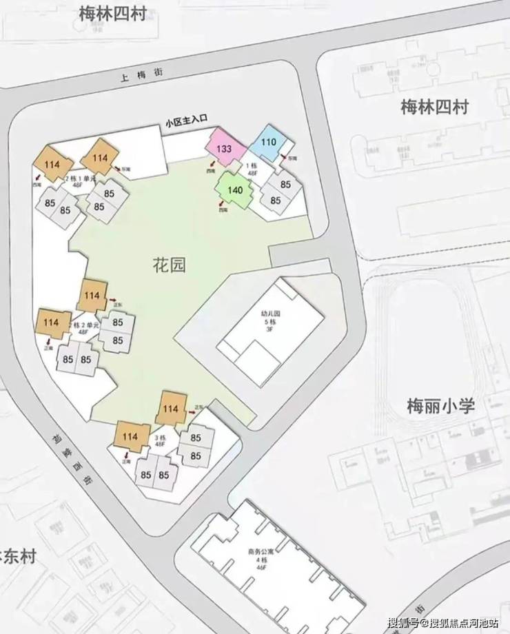 住宅主力户型:85/110—114/133—140平(三至四房)