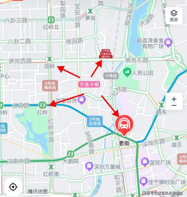 片区周边拥有1/2/3/5/7/9/17号地铁线7轨交汇,罗湖口岸跨境枢纽、罗湖北站高铁枢纽环伺,邻深南大道、滨河大道、红岭路等城市主干道,随时畅达粤港澳大湾区城市群
