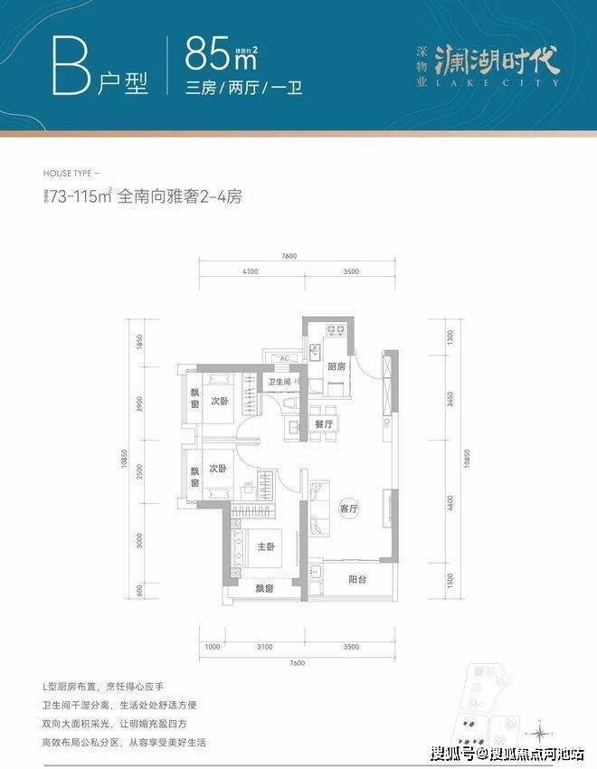 【产品面积段】建面约73-115㎡全南宽奢2-4房