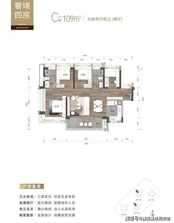 109 平(横厅)4 房 2 厅 2 卫