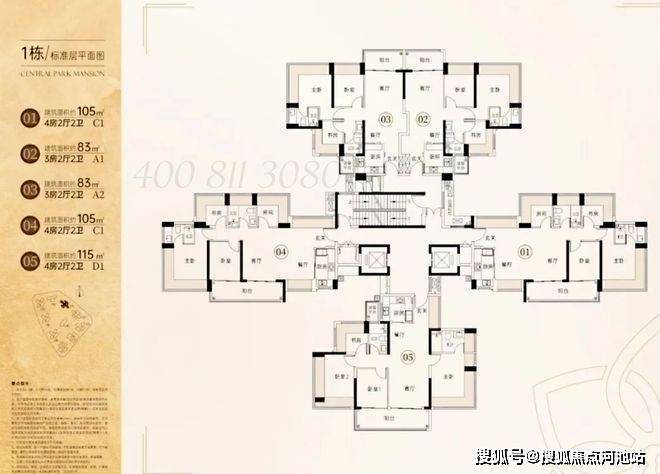 下面是振业天境云玺1栋和2栋户型分布平面图: