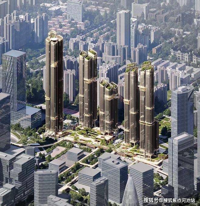项目由五座150-250米塔楼组成,采用错落布局和平面退台设计,以优化深圳湾景观视野。1栋公寓250米,4栋住宅分别150米、200米、200米、240米。层高3.3米,约40-70层(不含底商)