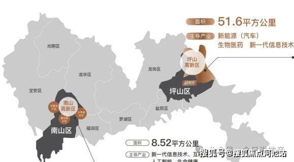 西靠南山,东邻坪山,坪山高新园区规划总面积51.6平方公里,预计吸引近6000亿元投资。园区内聚焦三大千亿级产业,打造四大标志性产业集群,前景广阔,潜力巨大。