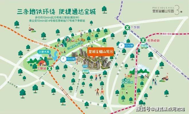 项目距离规划中的21号地铁线“三联站”距离约700米,周边还有14号地铁线“石芽岭站”,距离约2.1公里,5号地铁线“上水径站”距离约3.3公里。