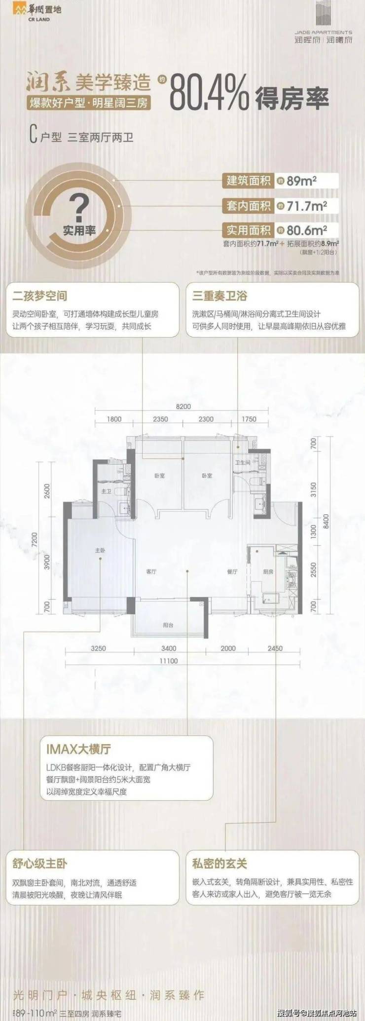 【润系美学,精研筑家】以东方简雅审美的润系精神,打造高实用率空间、精细收纳系统,实现美感与实用并存,建面约89-110㎡三至四房,润系臻宅,盛载全家人的生活向往。