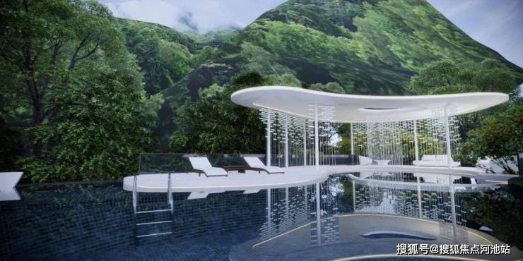 让水与树木相接,宛如游躺在山林间,可轻抚山的诗意,聆听袅袅余音,身心都能放松。想象一下,夏日晚间,来一场室外游泳,聆听一场自然的问候,是何等的惬意。
