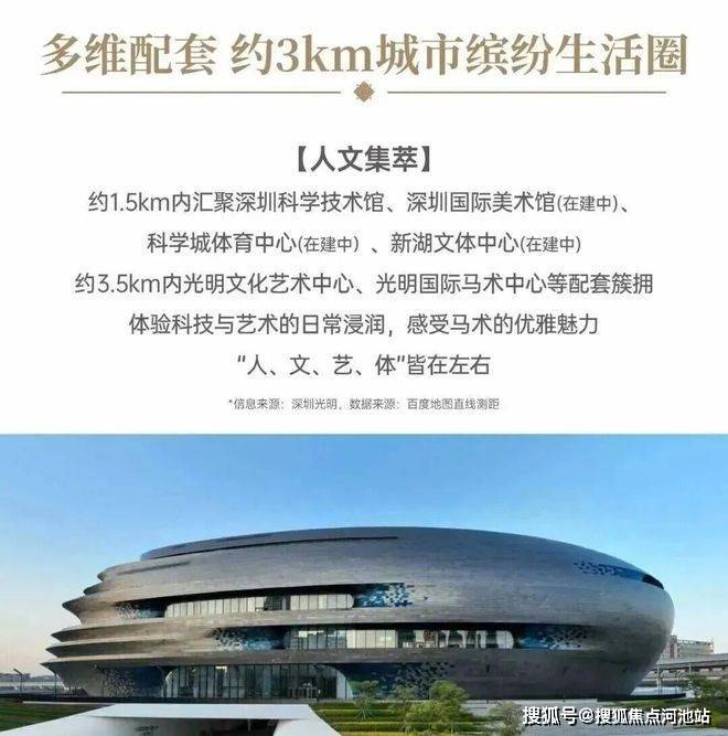 其他配套:约1.5km内汇聚深圳科学技术馆、深圳国际美术馆(在建中)、科学城体育中心(在建中)、新湖文体中心(在建中),约3.5KM内光明文化艺术中心、光明国际马术中心等配套簇拥。体验科技与艺术的日常浸润,感受马术的优雅魅力,“人、文、艺、体”皆在左右。