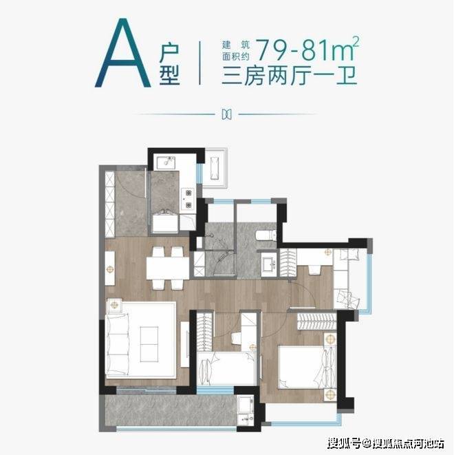 建面约79㎡三房两厅一卫