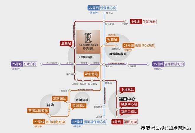 轨道交通:楼盘位于4号线清湖站A口,属于正地铁口物业,5站到深圳北,8站到福田。距离在建的22、27号线松和站900米距离,27号线去往南山留仙洞、科技园、前海方向。22号线去往福田福保方向。