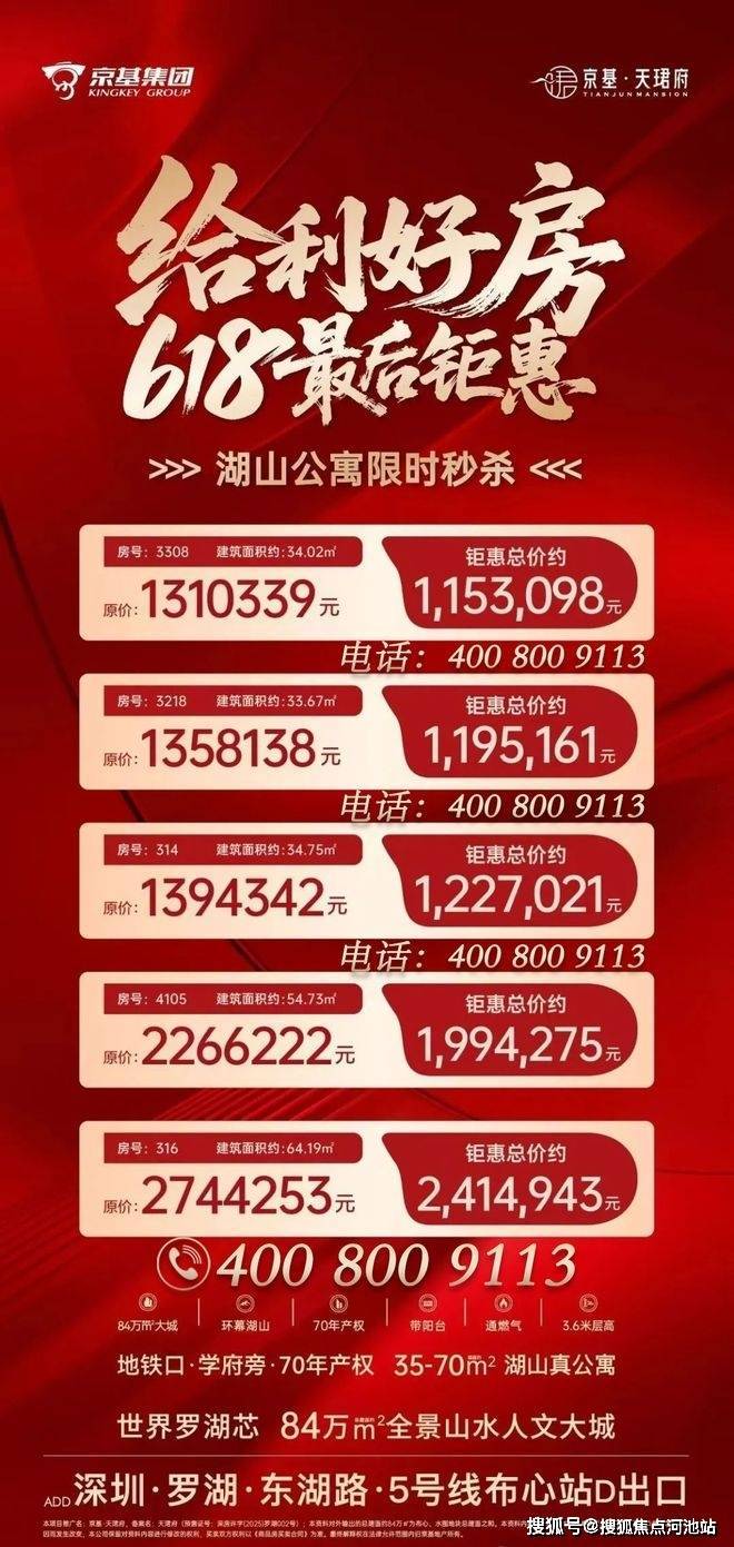 好消息来了:深圳罗湖京基集团开发商今年首个住宅项目——天珺府,突发重磅,首付5万总价268万,只有22套,建面约51平米住宅!是住宅!不是公寓!