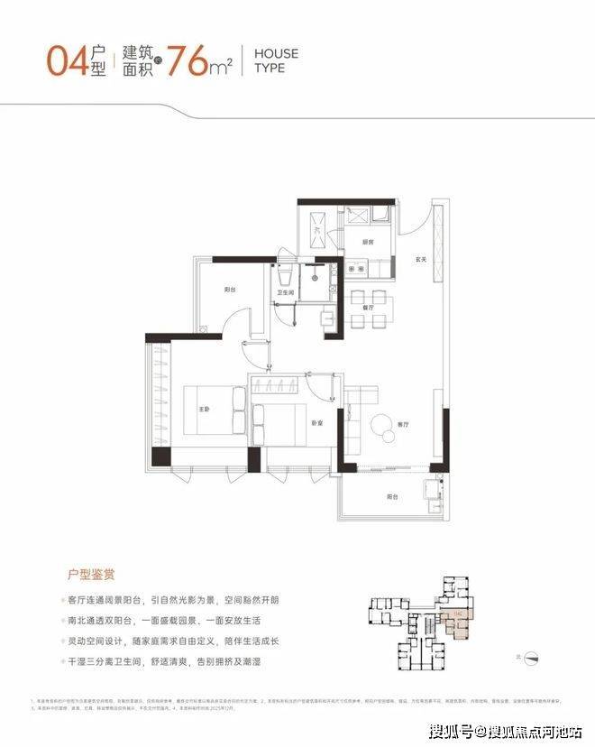 东南朝向,竖厅布局。这是整个项目的明星户型。75㎡做三房,放在以前想都不敢想,但现在新规户型就是能实现。东南朝向通透性好,三口之家住着很舒服。这个户型一定是抢得最厉害的。