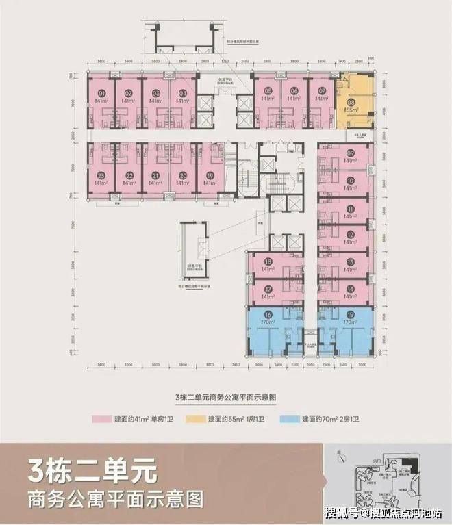 (41㎡单间760套、55㎡一房38套、70㎡两房76套)