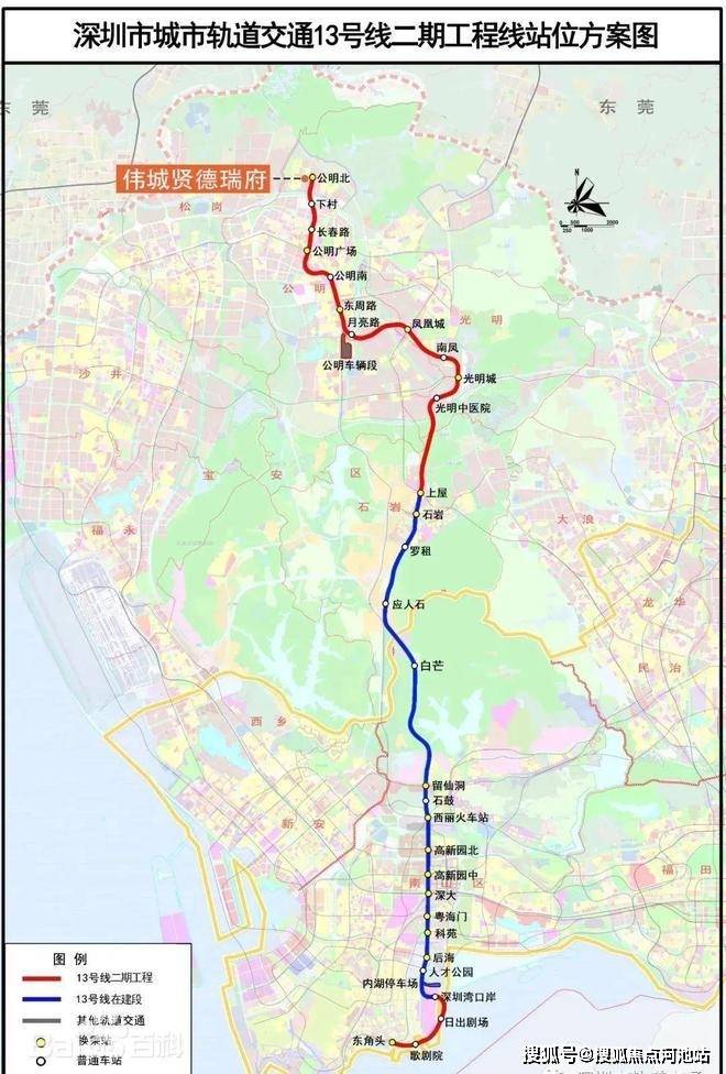 伟城贤德瑞府在光明区公明街道李松朗社区富力路与大园路交汇处,紧邻13号线二期公明北地铁站。13号线码农专线,适合南山刚需码农。项目配建有18班幼儿园一所,其离深圳外国语光明学校54班直线距离约600米也是一大亮点。