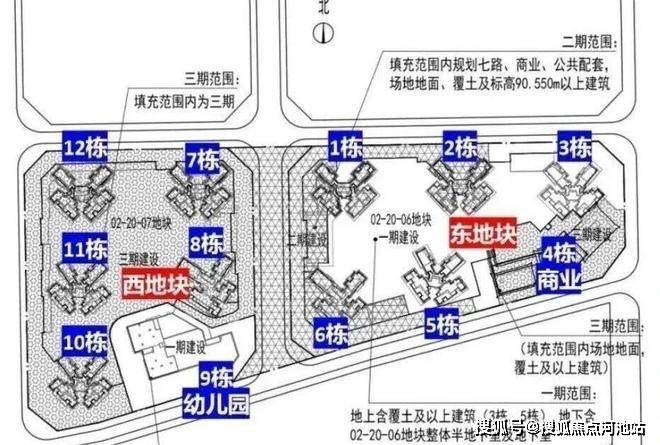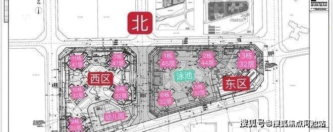西区:占地2.2万㎡,容积率5.16,包含住宅、商业、幼儿园学校和其它基础配套设施。7栋栋总高47F,3T6户;8栋、9栋、10栋总高32F,2T5户;11栋总高46F,3T6户,2T5户;1栋是幼儿园。