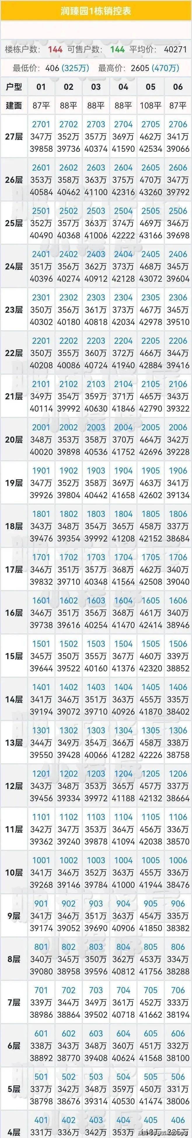 本次折后的户型价格区间为: