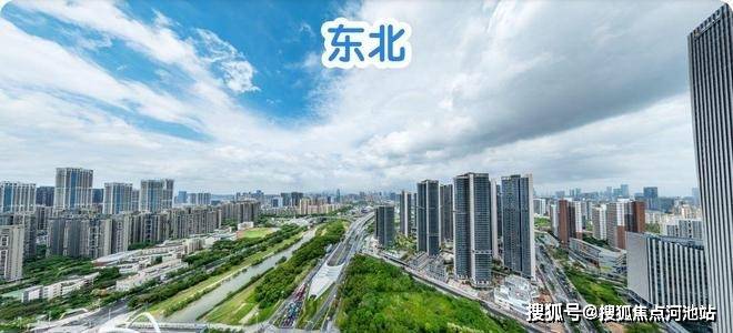 东北:楼下近距是公园绿地和双界河东段景观,远处看新安老城方向,整体远景城市景观为主。