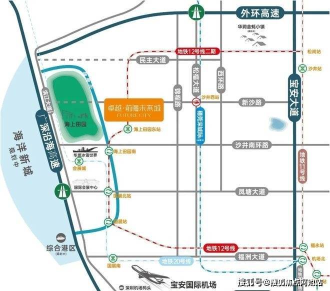 地铁口-12号线海上田园东站,邻距离换乘之王12号线海上田园东站,串联1、2、5、9、11、20号线,通达深圳各大中芯区。