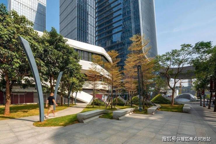多个不同类型的开放空间、广场和园景协同作用,以加强地面景观建筑,同时也为行人提供多样化的步行体验。这些空间可在不同时段服务于社区居民,灵活运用于工作、休闲及娱乐之中。公寓住宅塔楼还通过形成额外的高空开放空间“云端”会所回馈社区。