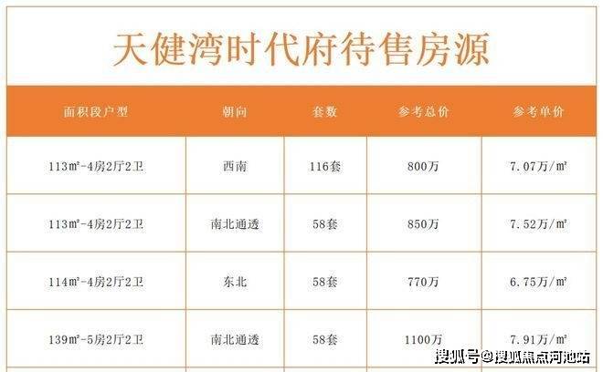 天健湾时代府113㎡4房预计750-850万,139㎡5房预计900-1100万。