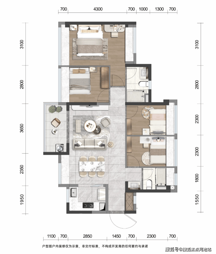 项目此次备案房源位于1/2/3/5/6栋,共925套建面约67-110㎡的2-4房住宅。