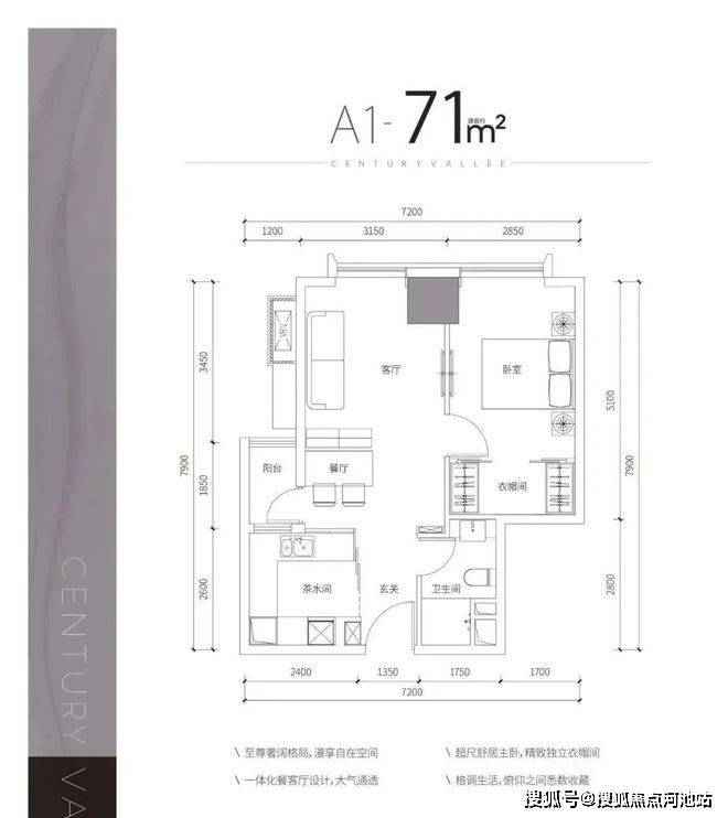 A1户型——建面约71㎡1房