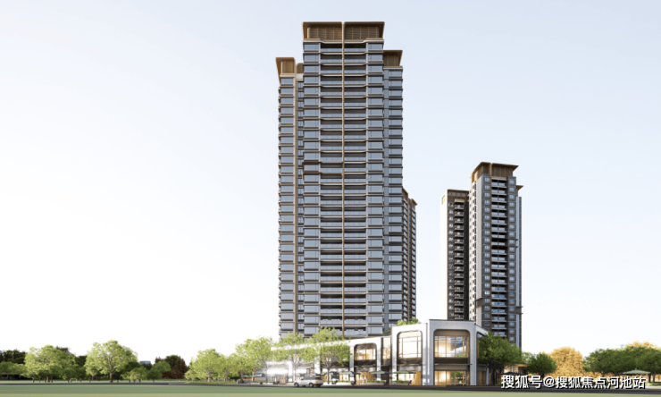 以现代简约的建筑语言,与海上田园、冰雪乐园链接观景动线,打造7大全周期活动景观配套+9大主题架空层,树立片区独特的现代生活美学复合型无界公园社区。