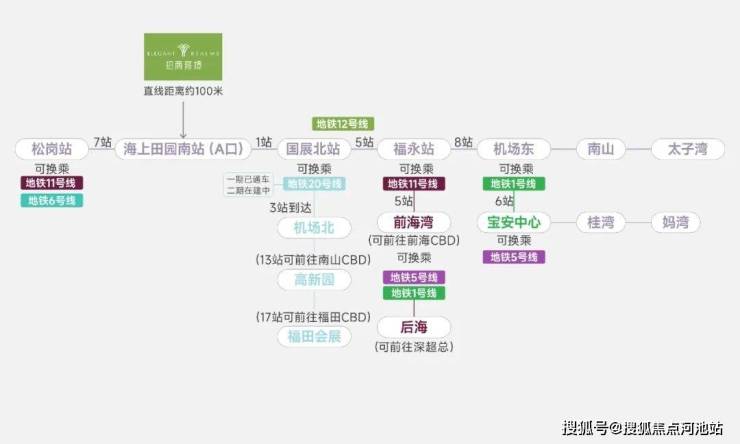 招商雍境二期与地铁12号线海上田园南站直线距离仅约100米(数据来源:百度地图、宝安日报),1站到国展北可换乘地铁20号线,5站到福永可换乘地铁11号线,8站到机场东站可换乘地铁1号线,轻松接入深圳密集交通网络,通达宝中、南山科技园、蛇口太子湾等繁华片区。特别值得一提的是,未来西部走廊轨道快线地铁20号线二期机场北-福田会展中心(建设中)联通后,将以最高120km/h速度运行,速抵前海会展、南山中心、福田中心等工作目的地,畅享高效通勤。(数据来源:深圳本地宝)