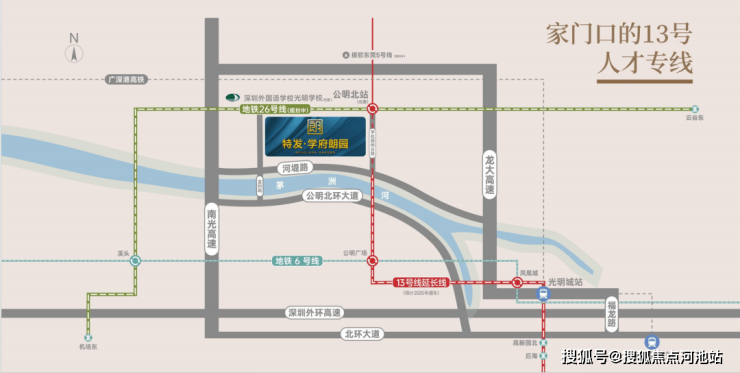 13号线二期北延预计2025年开通,届时从公明北站出发,可直达宝安、西丽、高新园、深圳湾;根据规划,26号线建成后,可直达宝安机场。