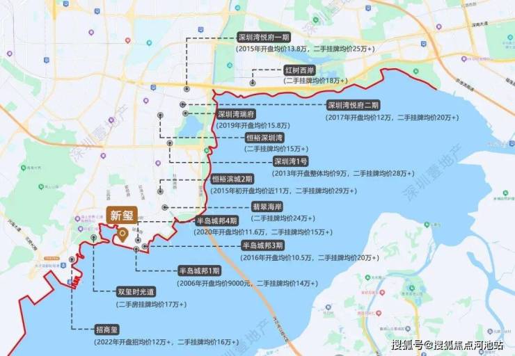 ▲深圳湾豪宅线示意图,挂牌均价为7月,来自贝壳找房