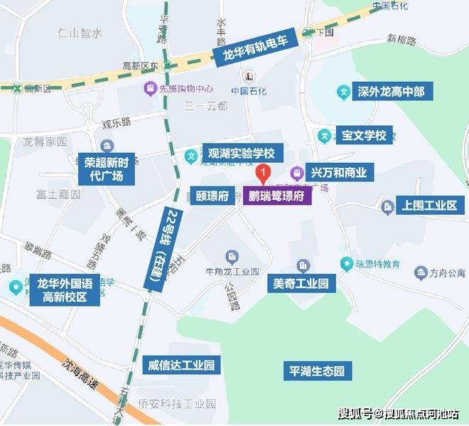 鹏瑞鹭璟府位于观澜高新园区,距地铁四号线比较远,距离地铁22号线(在建)观湖站约650米,2028年通车后交通会便利很多。