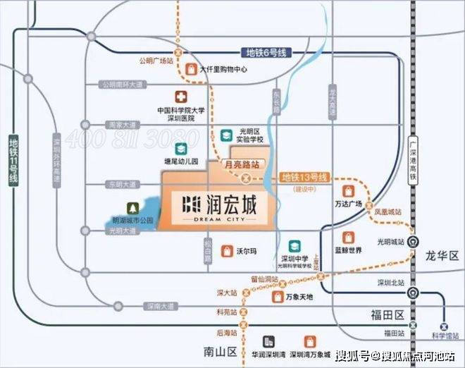 润宏城位于深圳市光明区凤凰街道13号线二期月亮路站附近,由华润置地和宏发集团联合打造,整体规划约382万㎡超大体量城市综合体,集轨道交通、优质教育、城市公园、创新产业、品质居住于一体,打造“宜居、宜业、宜游”都市生态标杆大城。