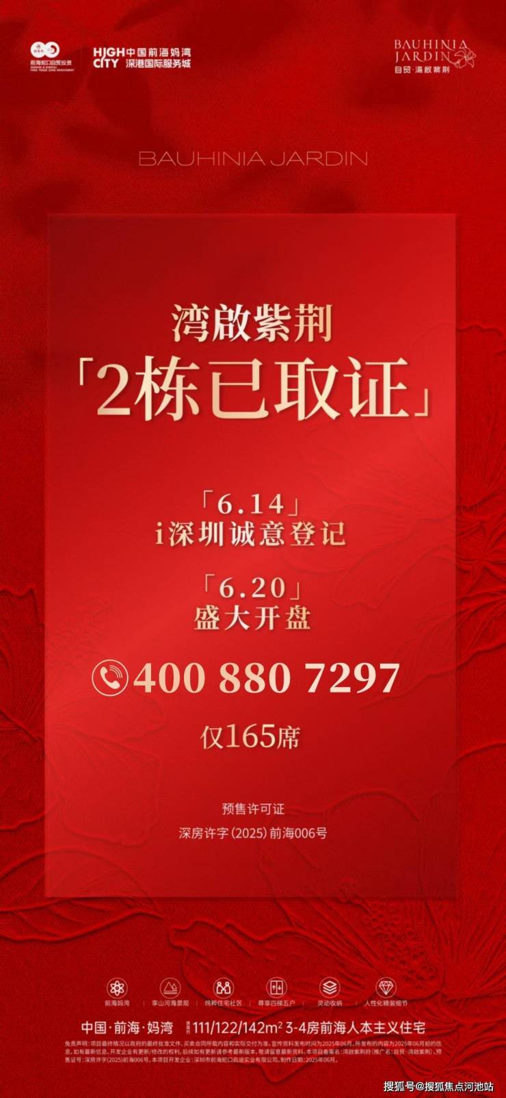 最新消息:位于深圳前海妈湾的新楼盘「湾啟紫荆府」已取证,6月14日开始诚意登记认筹,定于6月20日开盘选房,本次开盘加推最后一栋住宅2栋165套,面积为111-122-142㎡,其中111㎡3+1房66套,122㎡4房33套,142㎡4房66套。
