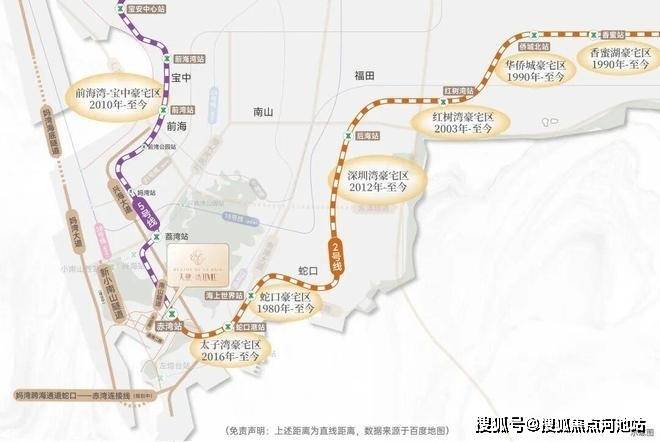 项目距2号线(豪宅线)与5号线(发展线)首发赤湾站约300m(直线距离),从此,坐地铁而不是站地铁,未来新小南山隧道(预计2027年竣工)、望海路升级等重大交通配套持续落地,咫尺间连通蛇口、前海。