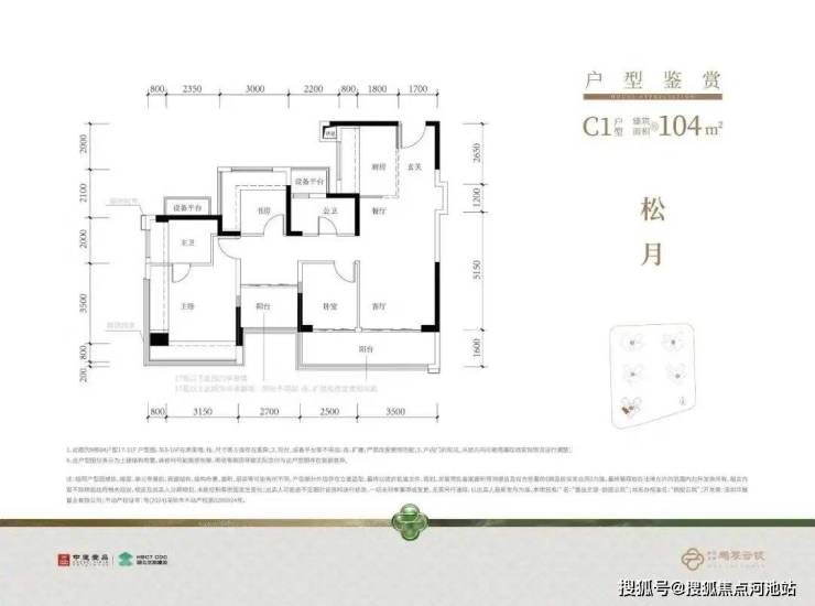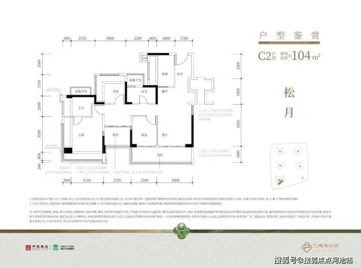 【建筑面积104㎡4房2卫】