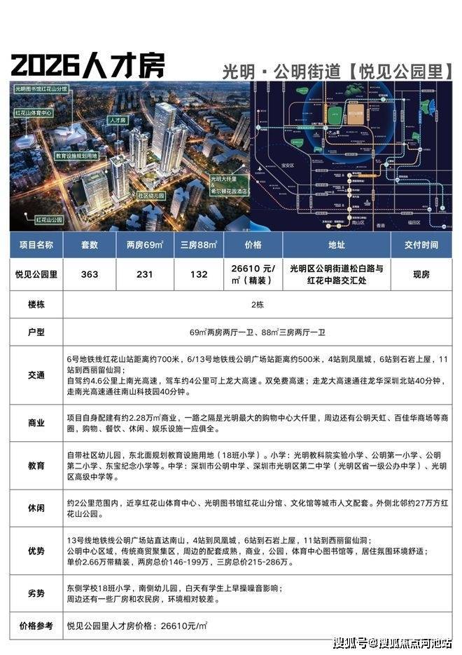 宏发悦见公园里,深圳光明区公明街道唯二人才房,大仟里购物中心、省一级学校公明中学还有网红景点红花山公园都在项目500米范围内。