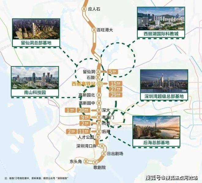 1、13号线地铁线公明广场站直达南山,4站到凤凰城,6站到石岩上屋,11站到西丽留仙洞;