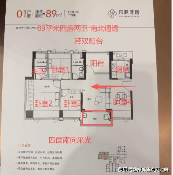 【01户型】约89m²绝版4房2卫折 后总价630万-660万南北通透 带双阳台 客厅带阳台 餐厅带阳台 主卧室带270度观景阳台,四面采光很好