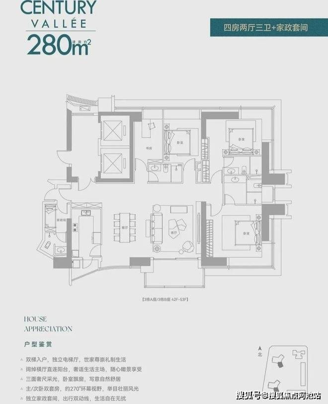 2、8 梯 3 户 、双梯私家入户, 打造 3.5 米层高,高阔的居住体验,深圳住宅天花板,金钥匙服务管家体系标准