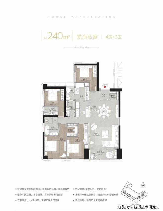 建面约240㎡揽海私寓 4房+3卫(T11-02)