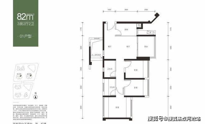 【面积】:约82-89㎡3房2卫