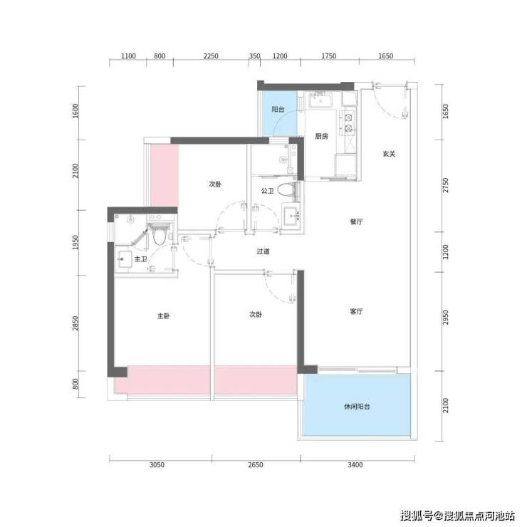 【建筑面积88㎡3房2卫】