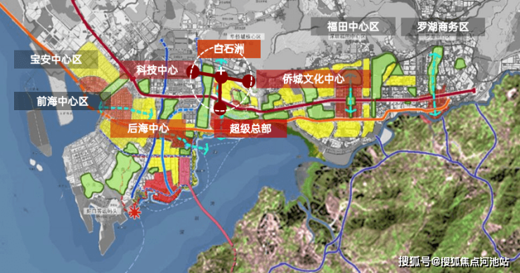 周边环绕着深圳湾超级总部基地、后海总部基地、蛇口前海自贸区 等核心区域,吸纳各方投资总额 超8400亿元,吸纳高精尖人才 超75万人,世界500强,中国200强总部企业云集。