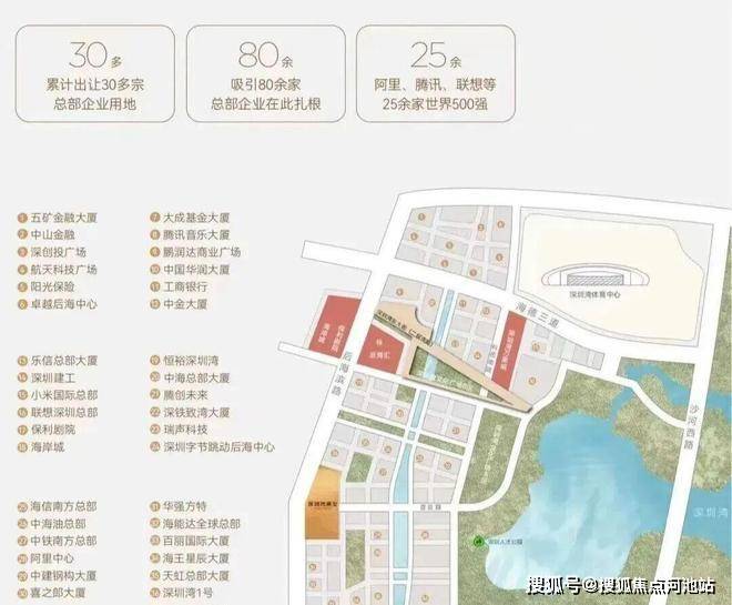 作为深圳唯一以“超级”命名的总部基地,深超总规划定位极高,总投资约2100亿元,目前已完成80%土地出让,累计投资达1200亿元。片区已吸引19家世界500强及创新科技企业总部入驻,包括中国电子、招商银行、京东、OPPO、大疆等,产业集聚效应显著。