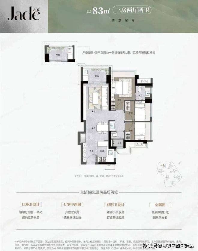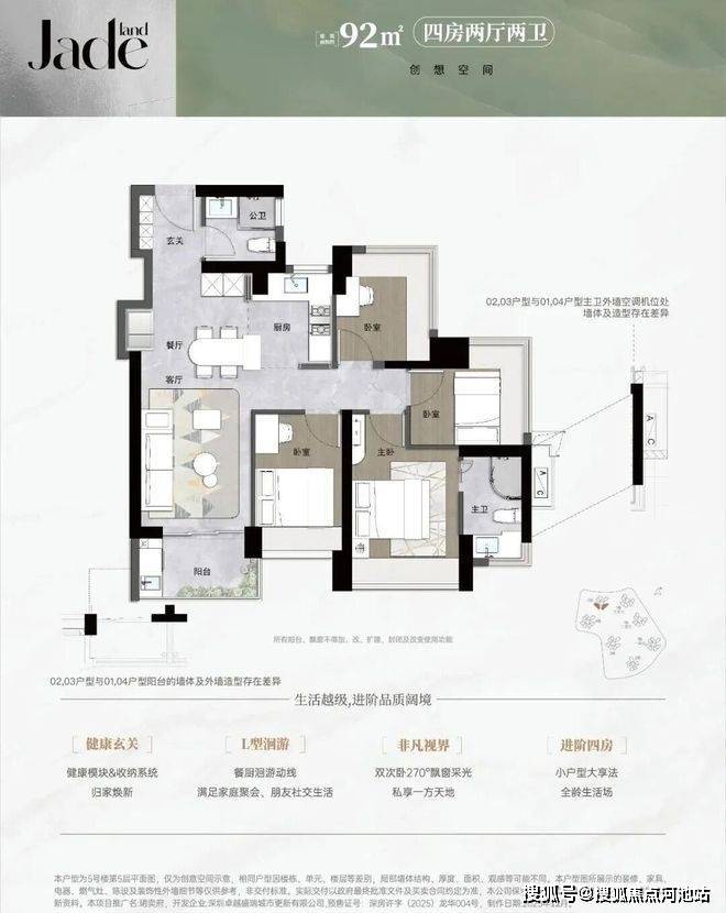 竖厅设计,92%得房率(含赠送),西北朝向阳台,预留冰箱位,主卫干湿分离。